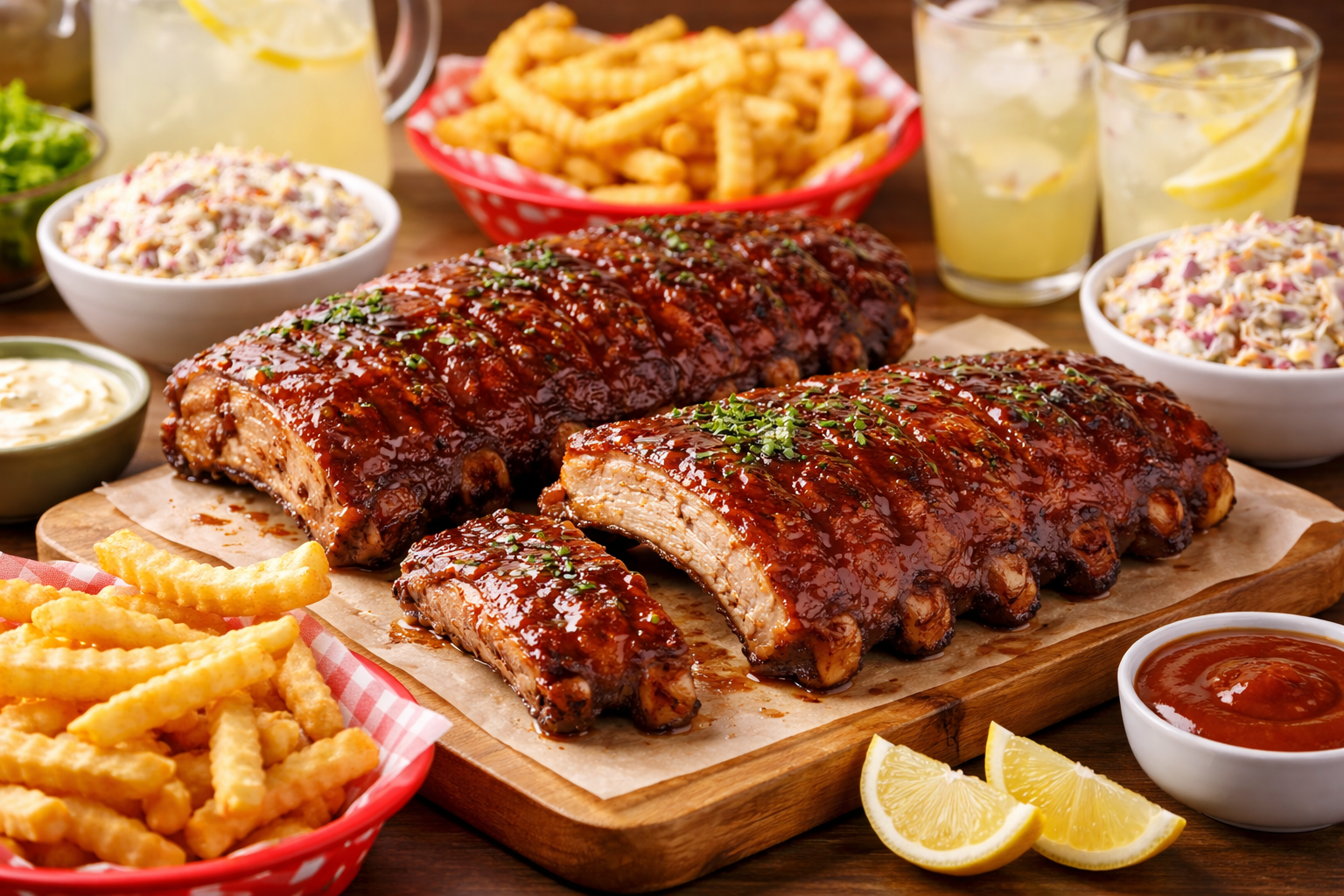 02 Costillas Jr + 02 papas fritas + 02 ensaladas de col + 01 jarra de limonada